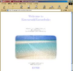1.JavaアプレットソフトAnftyをダウンロードして、さっそくチャレンジしてみた。Javaを使用したイメージが簡単にできるすぐれもの。ただ40種程度しか組み込んでなく我がサイトで使用できるパターンは少ない。取りあえずトップページを作ってみた。2001.11.13 |
