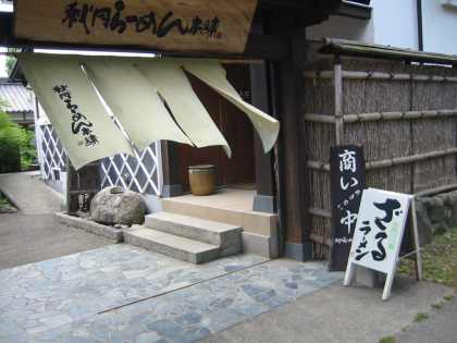 杉の馬場をそぞろ歩いていると、何箇所かに『蕎麦』と、『霊水』の案内が掲げられています.一度は入ったお蕎麦屋さんが大入りで出来上がるのに時間がかかりそうなので、地図を頼りに『竹地蔵 愛深』の蕎麦を戴くことに決定.車に戻り、走ること10分強で、竹地蔵の入り口に到着です. 『手打ち蕎麦 愛深』さんは参道にあるようです. |