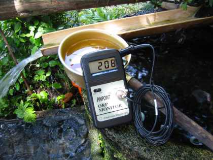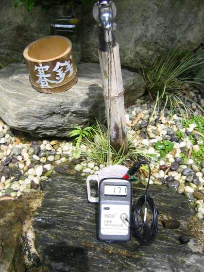 しかしながら、全国の水道水やほとんどの湧水はプラスの電位を持っています。プラスの数値が高い程「酸化度、酸化力」が高いといえます。