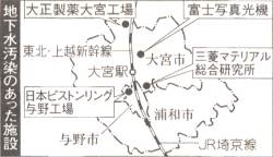 これに先立ち、昨年八月には大宮市などにある三菱マテリアルの県内三施設で環境基準値の三百六十倍のカドミウムや八千倍のトリクロロエチレンが検出されたことが、十月には富士写真フイルムの子会社の富士写真光機(大宮市)で環境基準値の九千倍という地下水汚染の実態がそれぞれ発表されたが、ともに公表は遅れた。